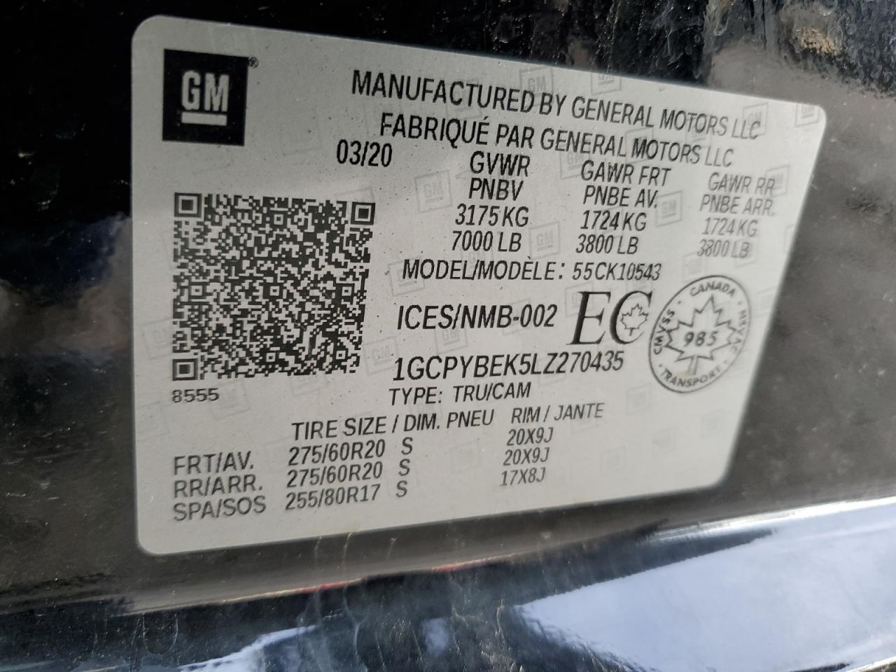 1GCPYBEK5LZ270435