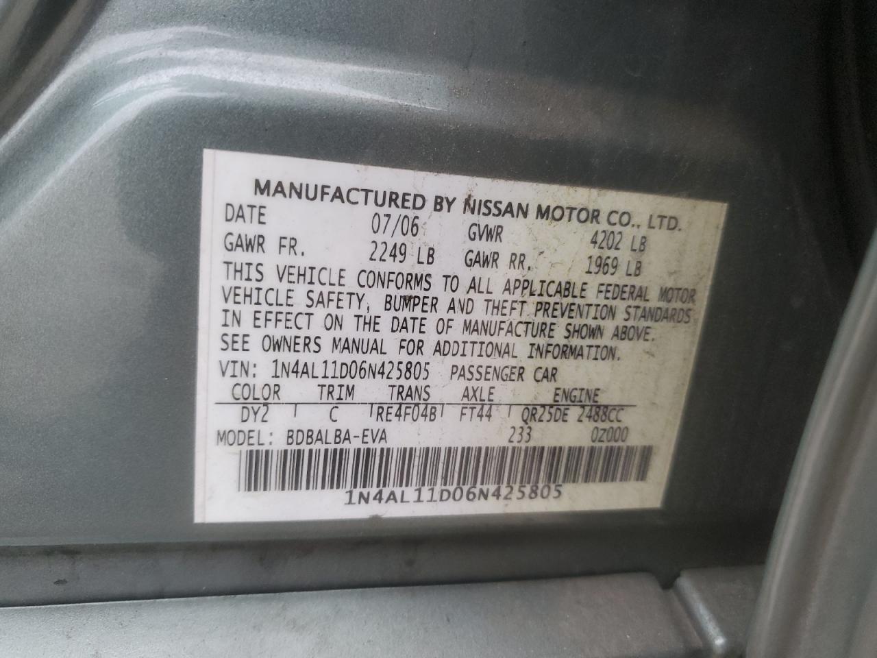 VIN: 1N4AL11D06N425805