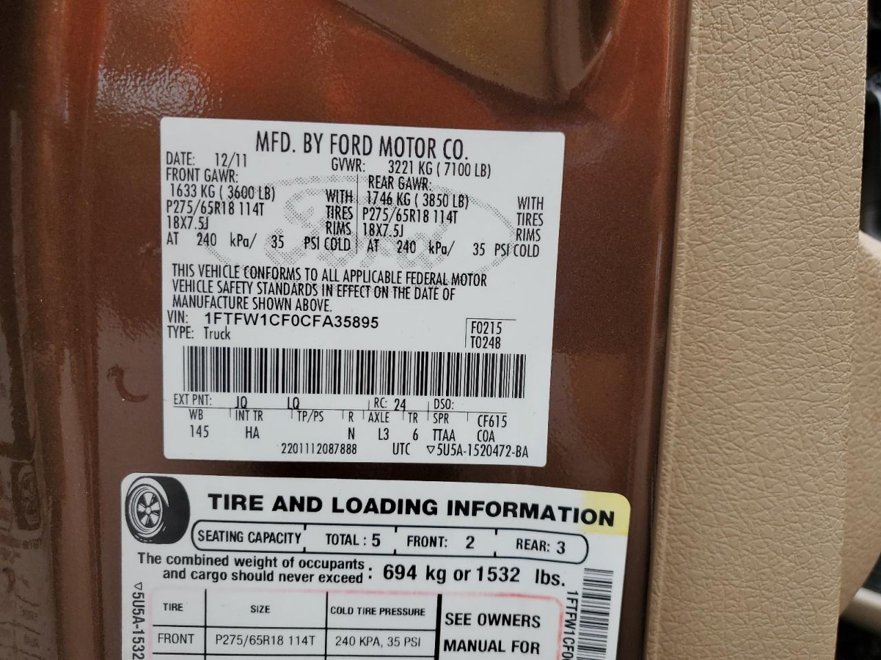 VIN: 1FTFW1CF0CFA35895