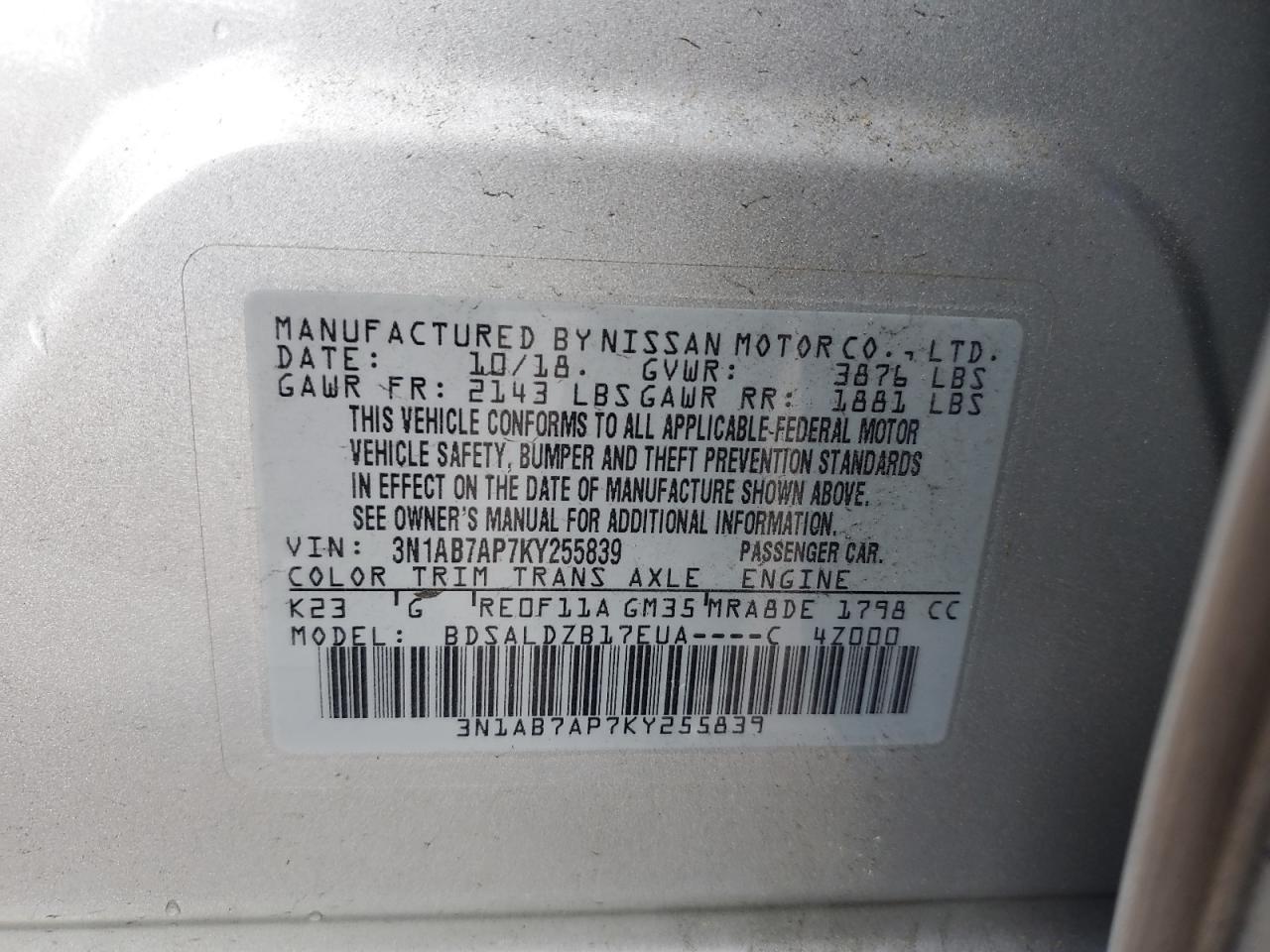 VIN: 3N1AB7AP7KY255839