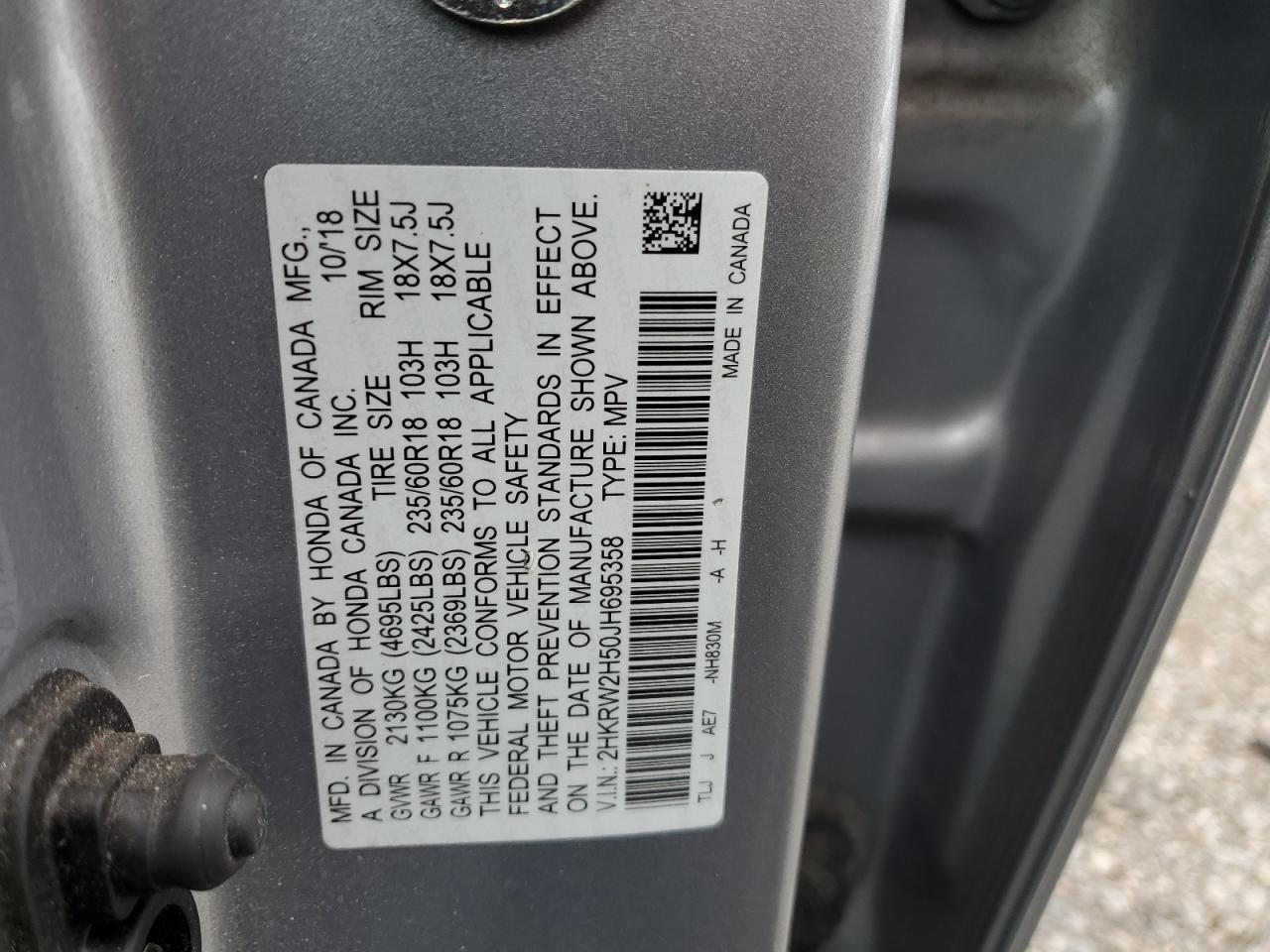 VIN: 2HKRW2H50JH695358