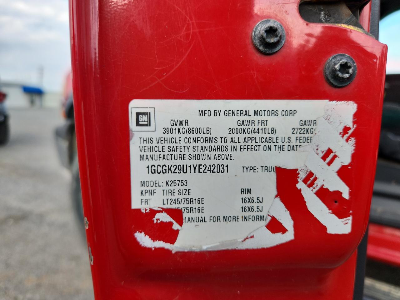 VIN: 1GCGK29U1YE242031