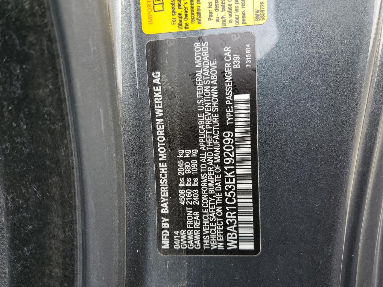 VIN: WBA3R1C53EK192099