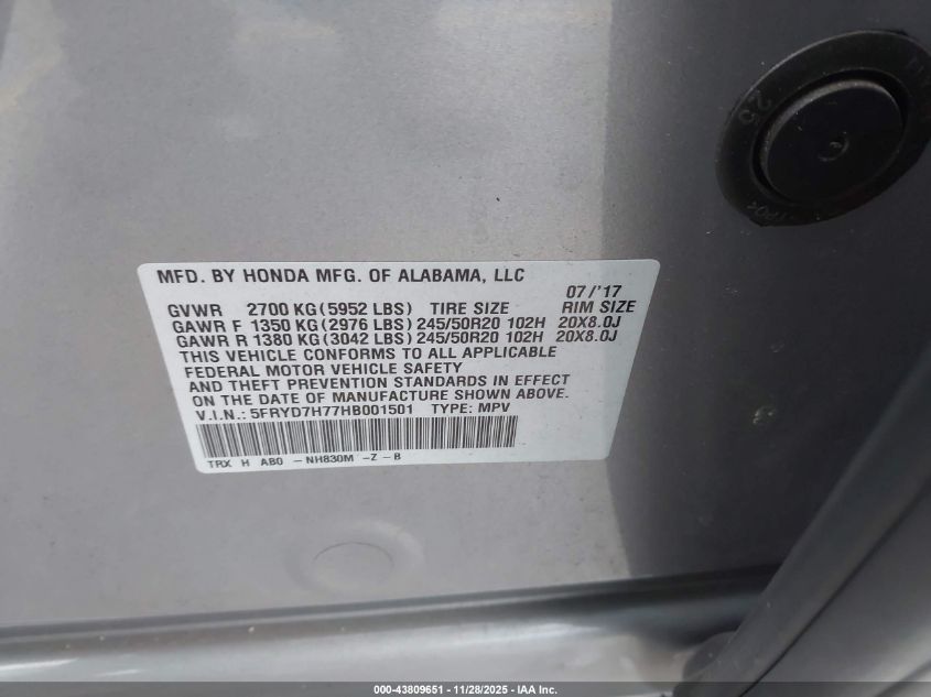 5FRYD7H77HB001501