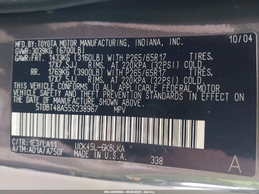 5TDBT48A55S238967