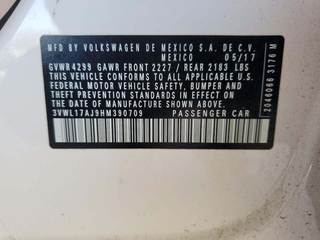 VIN: 3VWL17AJ9HM390709