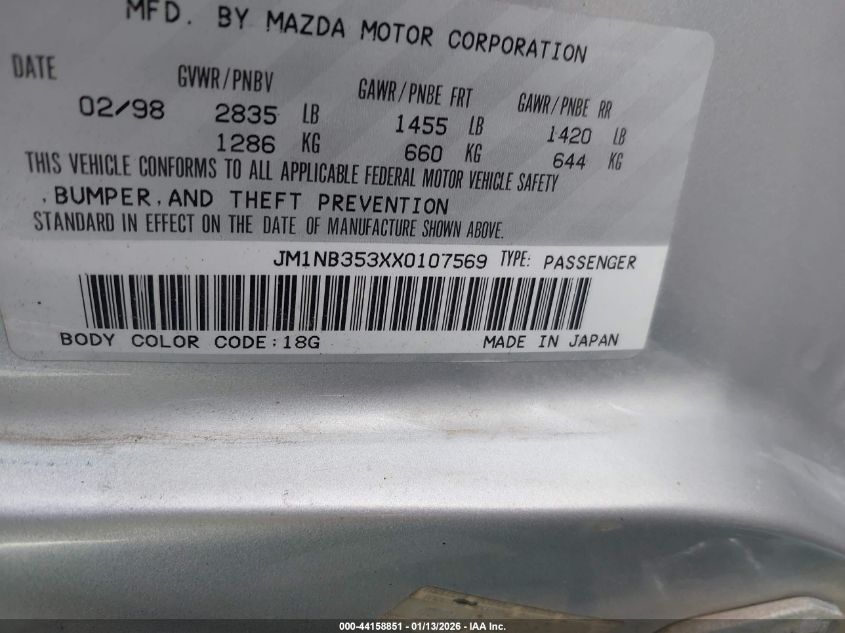 1999 MAZDA MX-5 MIATA LEATHER PKG/POPULAR EQUIPMENT PKG/SPORTS PKG/TOURING PKG
