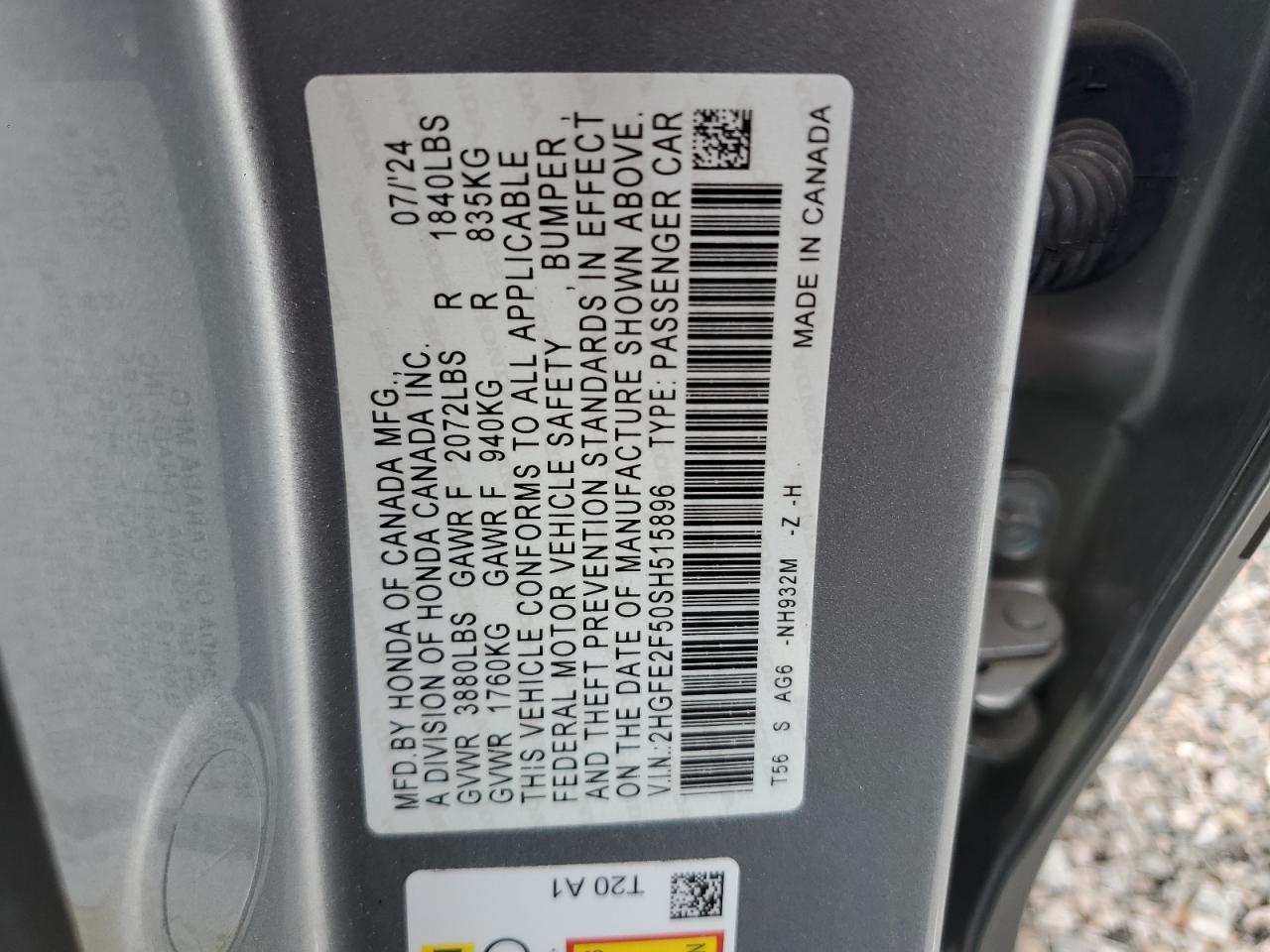 VIN: 2HGFE2F50SH515896