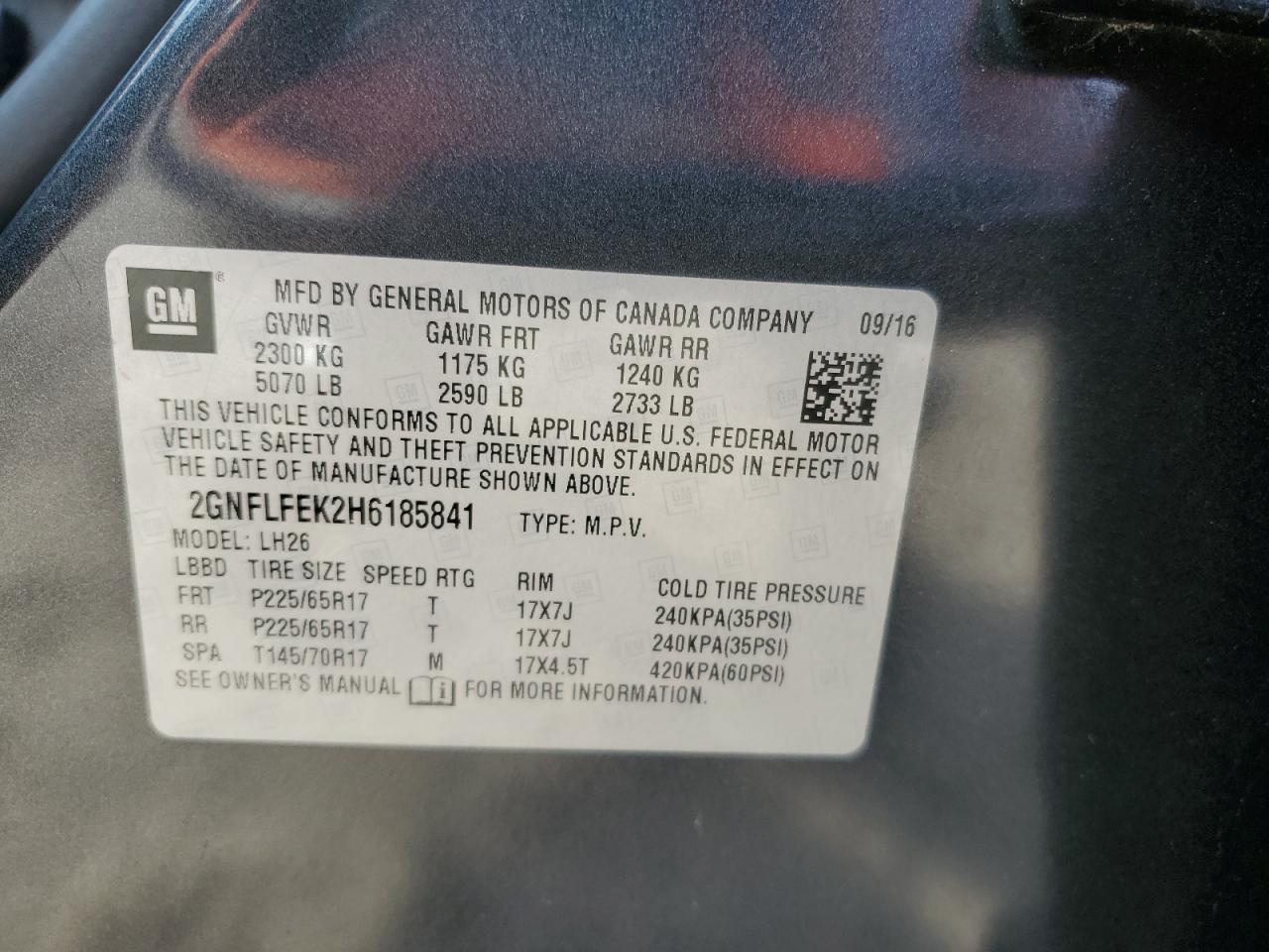 VIN: 2GNFLFEK2H6185841