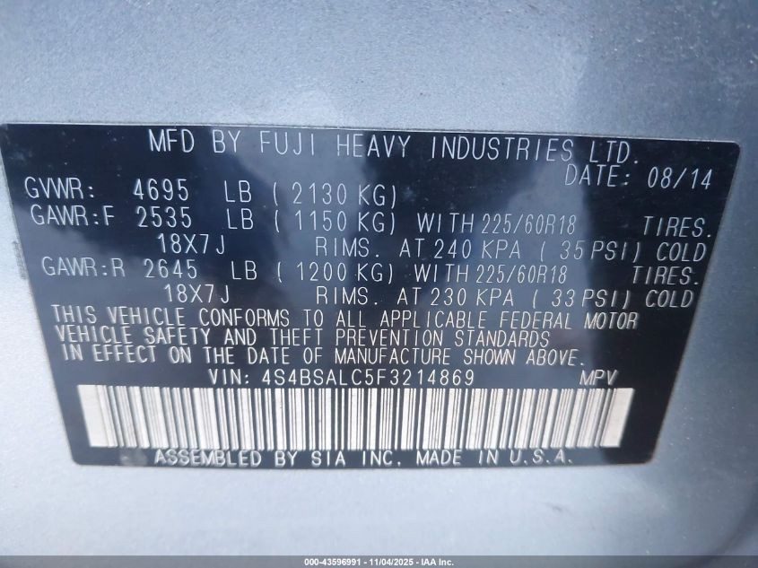 2015 SUBARU OUTBACK 2.5I LIMITED
