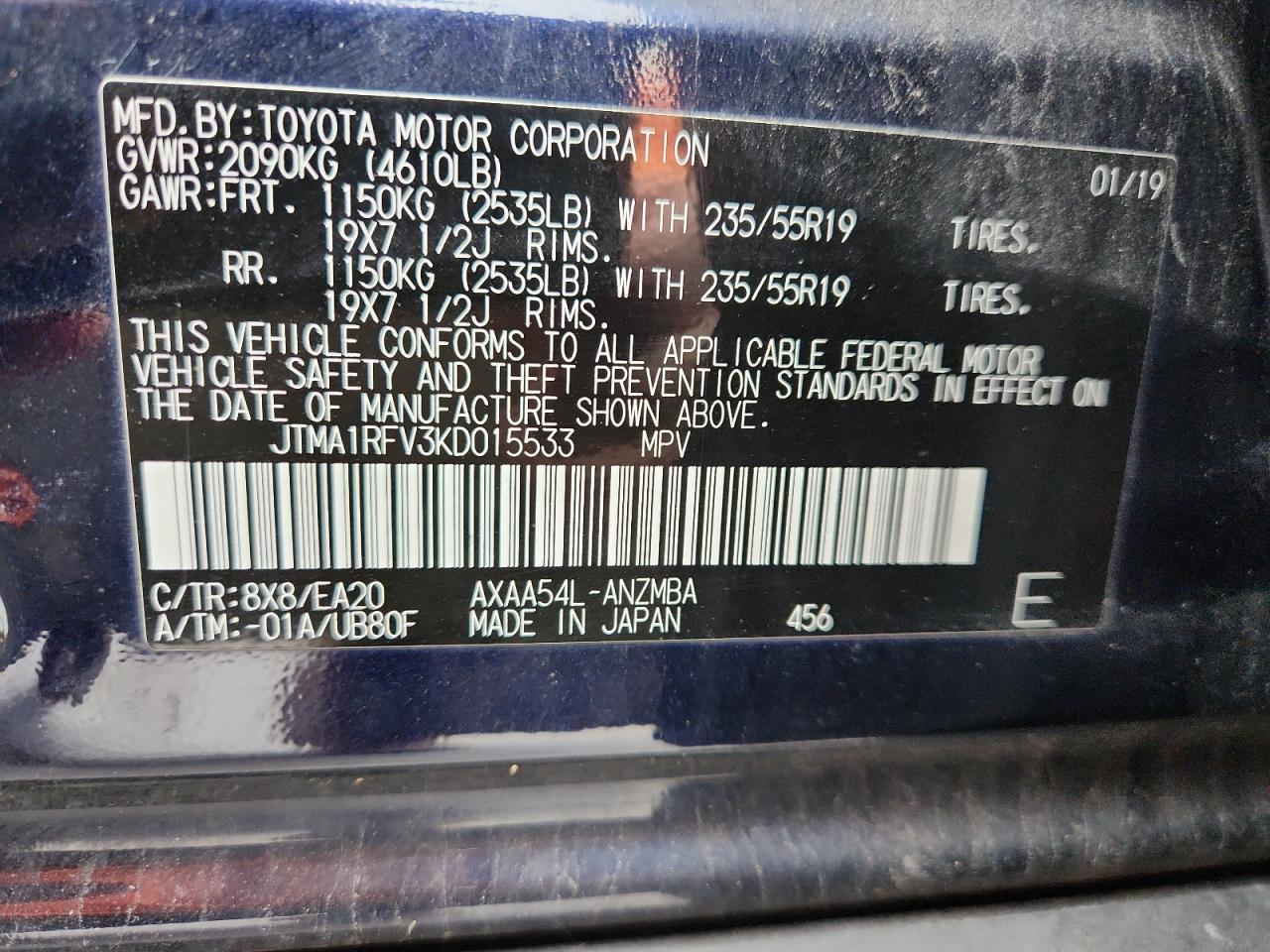 VIN: JTMA1RFV3KD015533