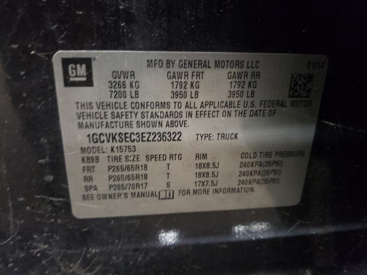VIN: 1GCVKSEC3EZ236322