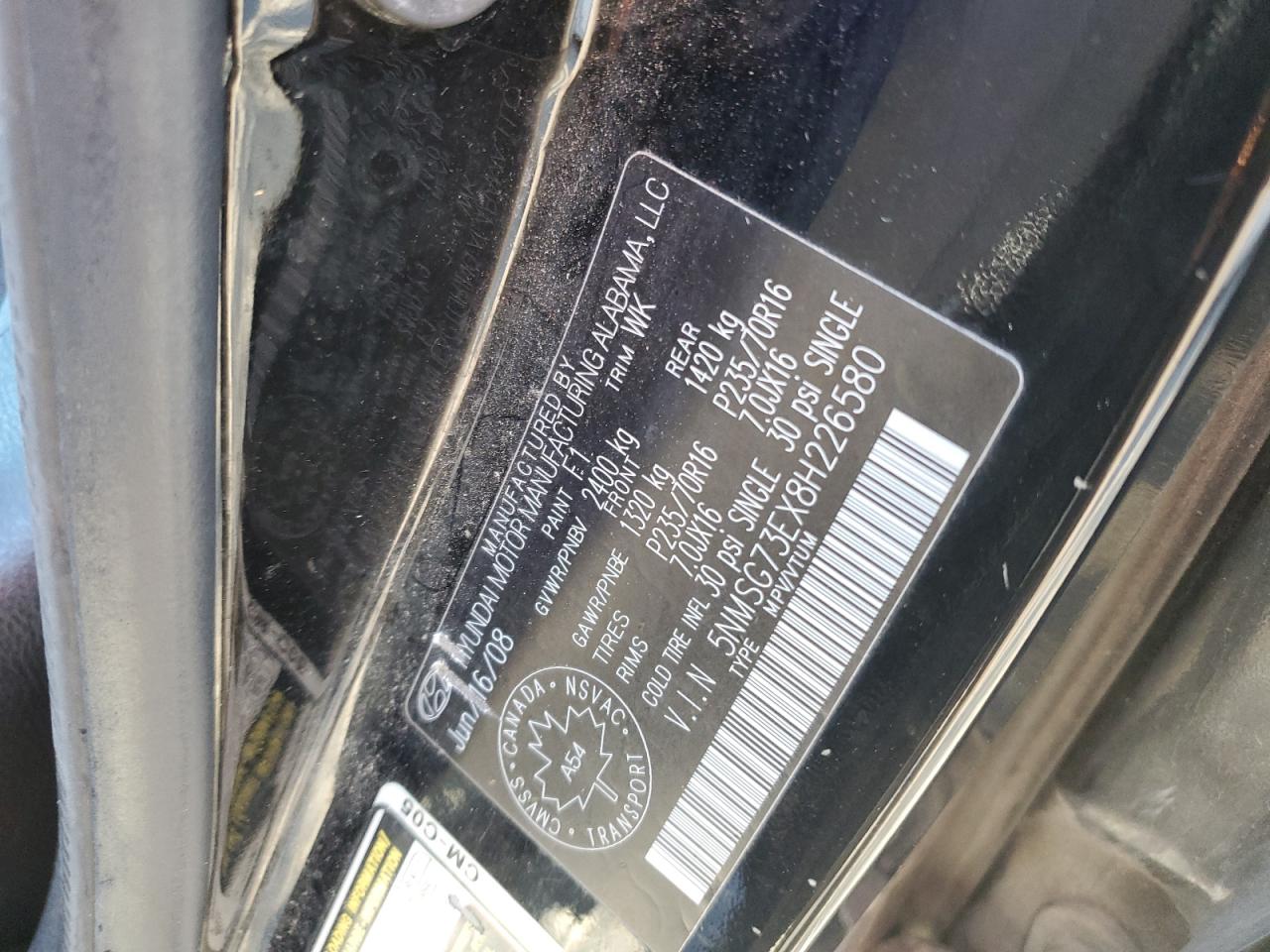 VIN: 5NMSG73EX8H226580