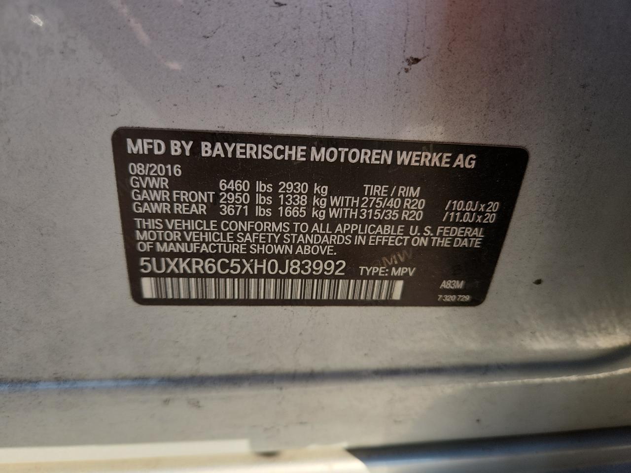 5UXKR6C5XH0J83992