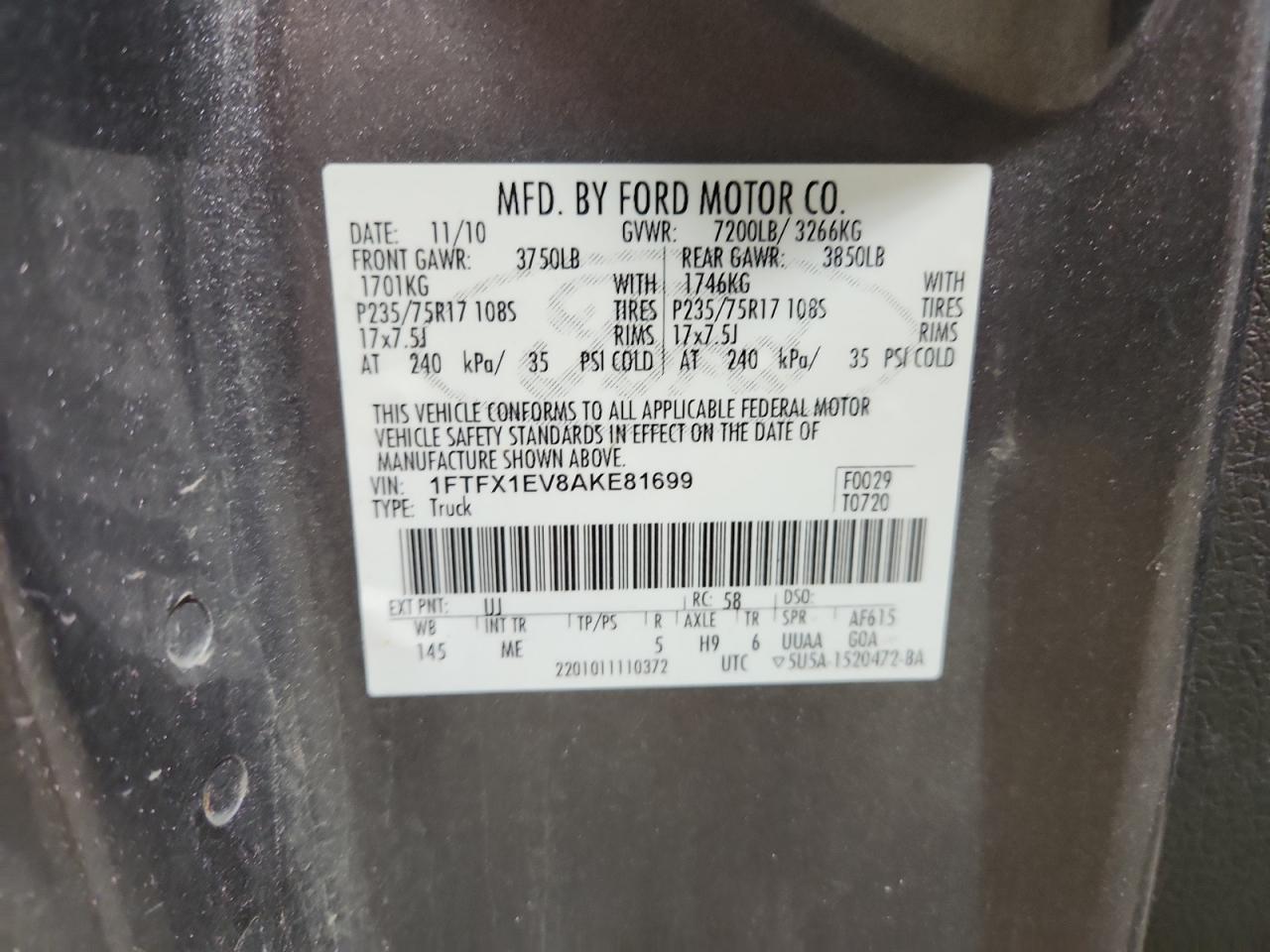 VIN: 1FTFX1EV8AKE81699