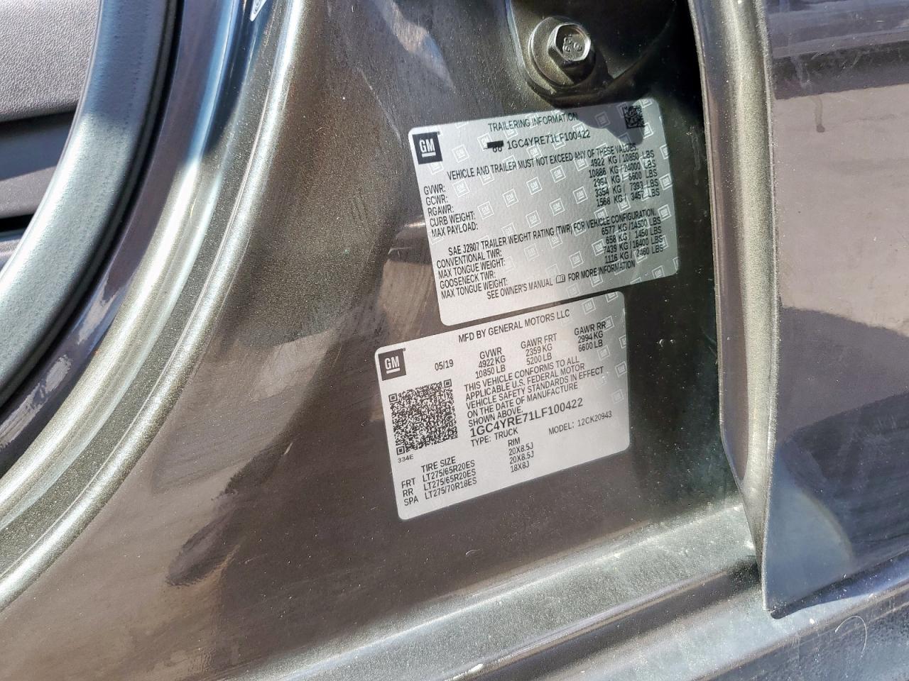VIN: 1GC4YRE71LF100422