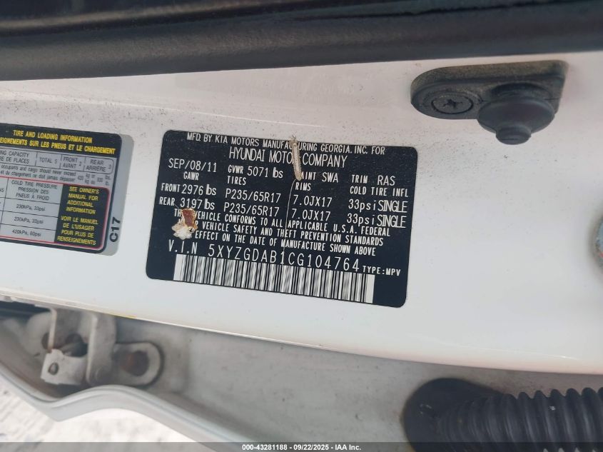 2012 HYUNDAI SANTA FE GLS