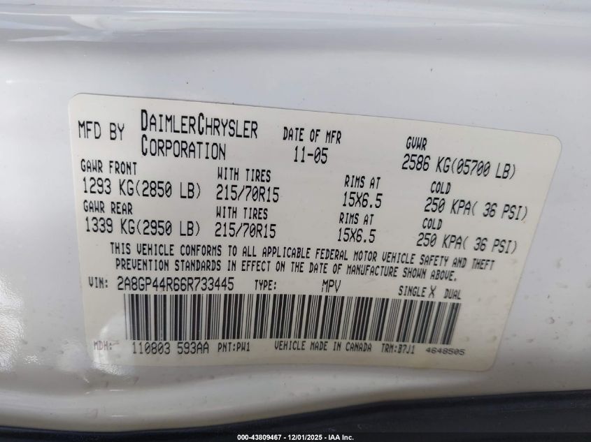 2006 CHRYSLER TOWN & COUNTRY LX