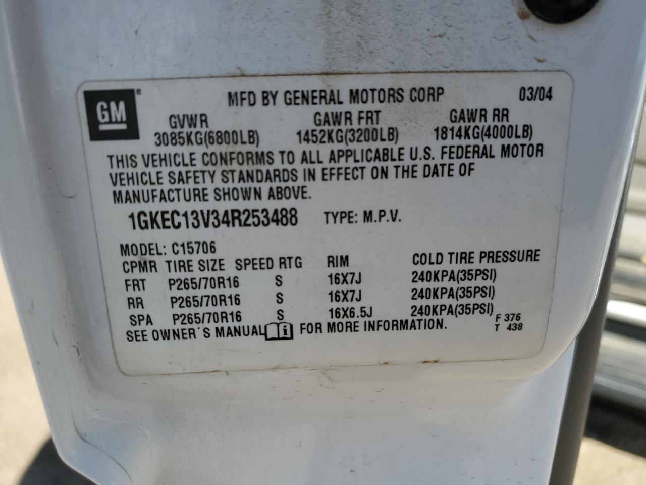 VIN: 1GKEC13V34R253488