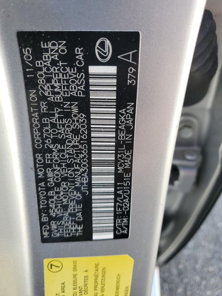 VIN: JTHBA30G365162039