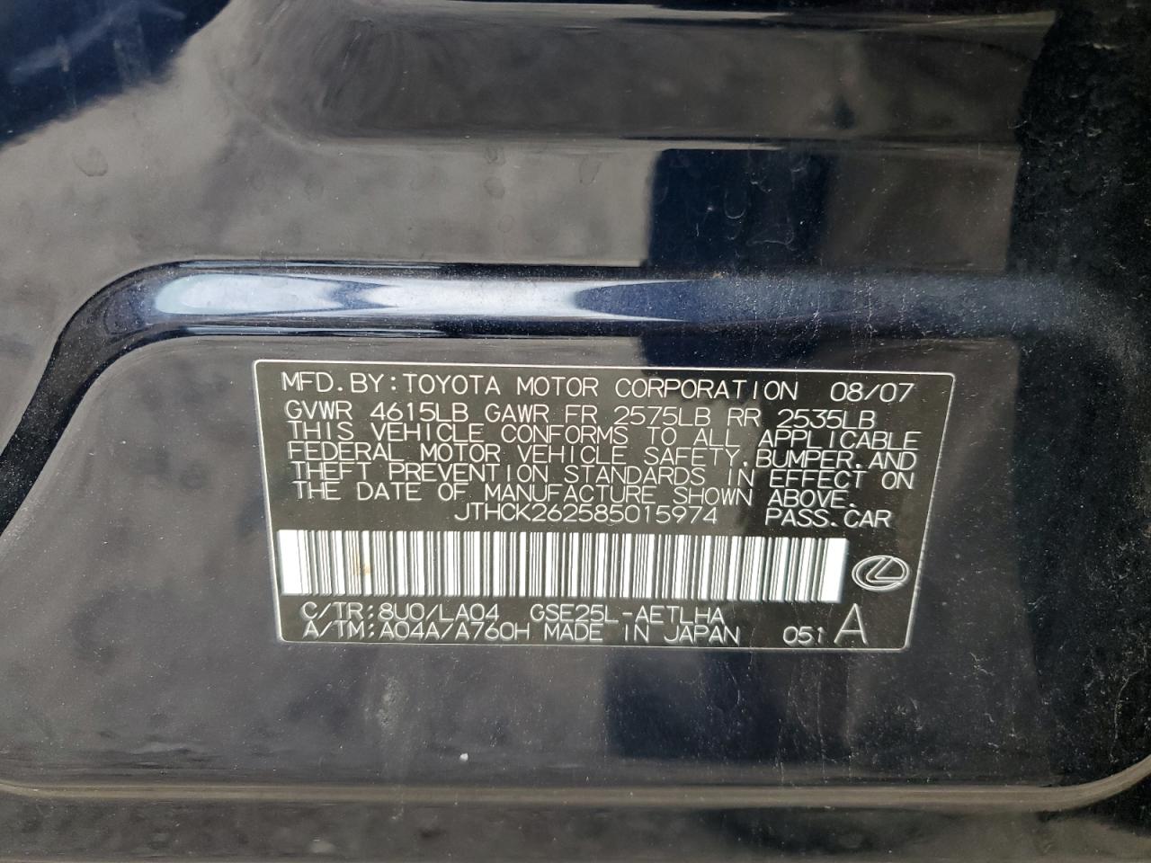 VIN: JTHCK262585015974