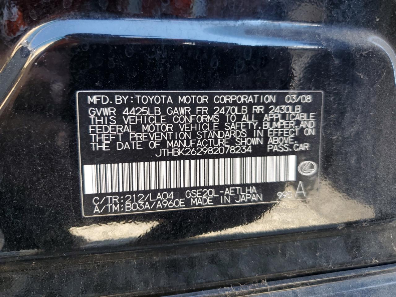 VIN: JTHBK262982078234