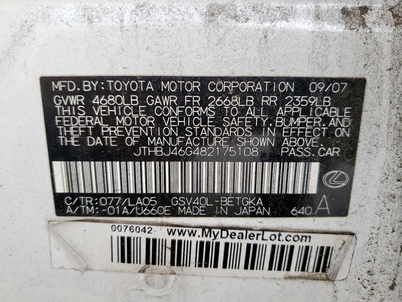 VIN: JTHBJ46G482175108
