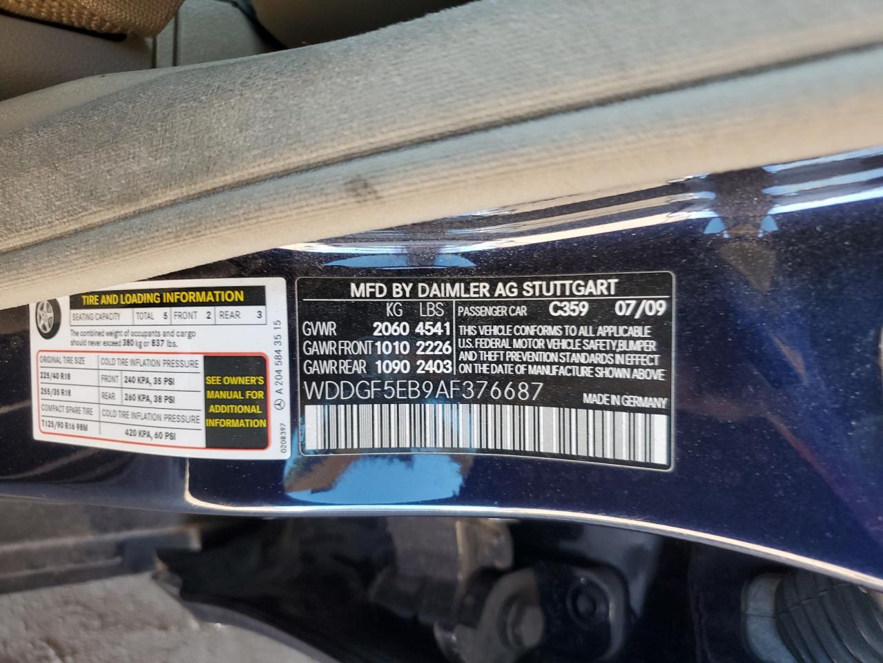 VIN: WDDGF5EB9AF376687