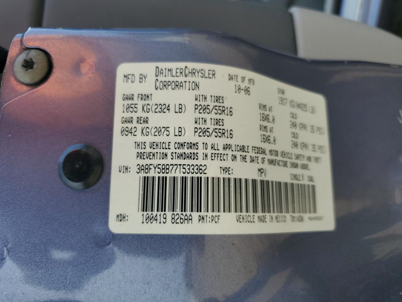 VIN: 3A8FY58B77T533362