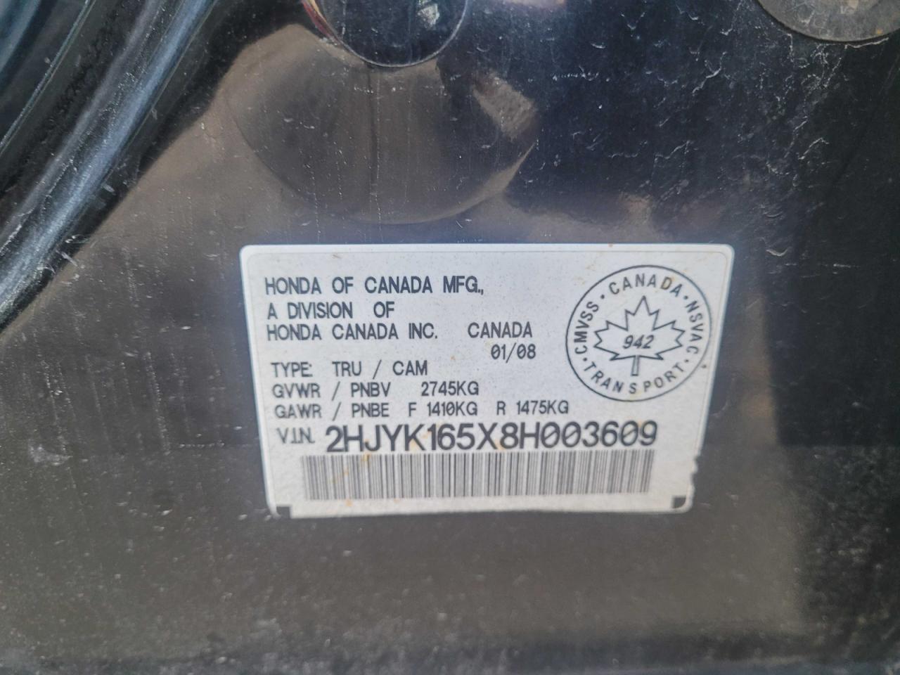 VIN: 2HJYK165X8H003609