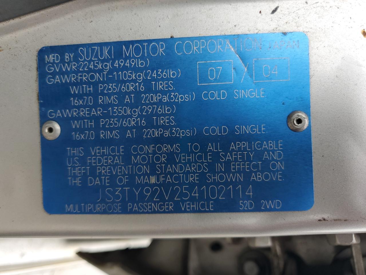VIN: JS3TY92V254102114