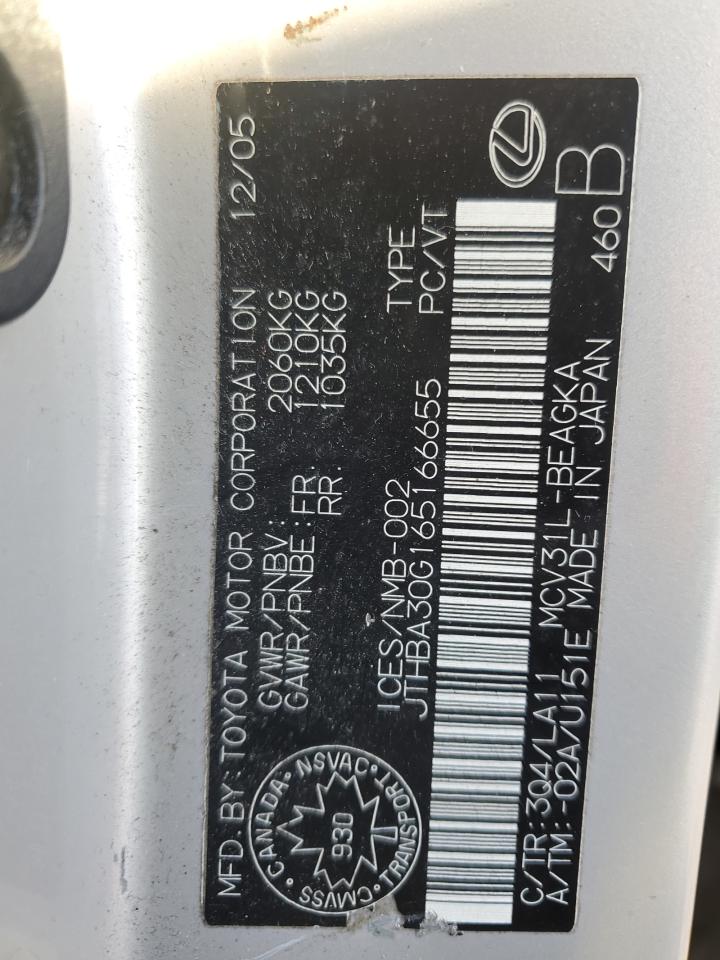 VIN: JTHBA30G165166655