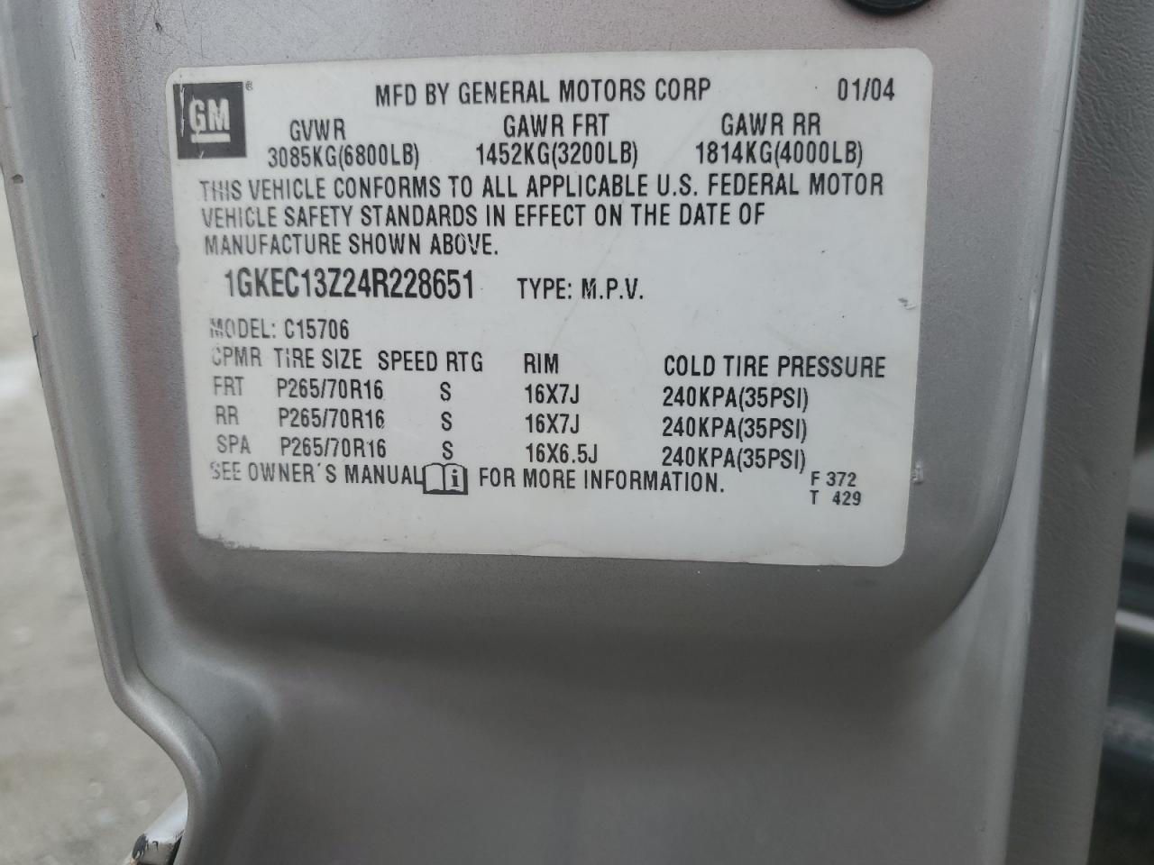VIN: 1GKEC13Z24R228651