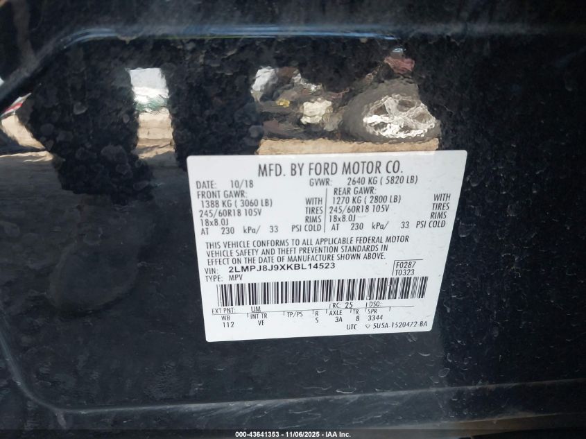 2019 LINCOLN NAUTILUS STANDARD