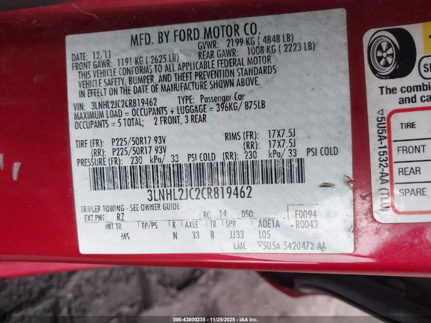 2012 LINCOLN MKZ