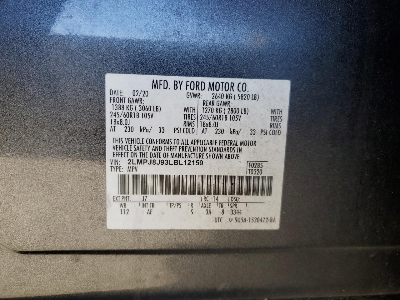 VIN: 2LMPJ8J93LBL12159