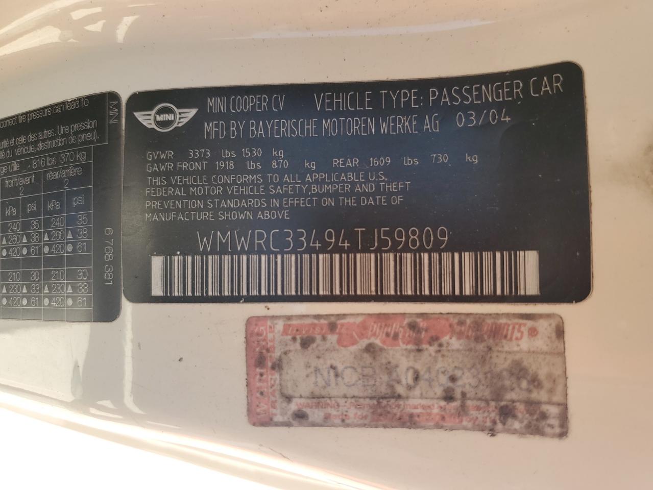 VIN: WMWRC33494TJ59809