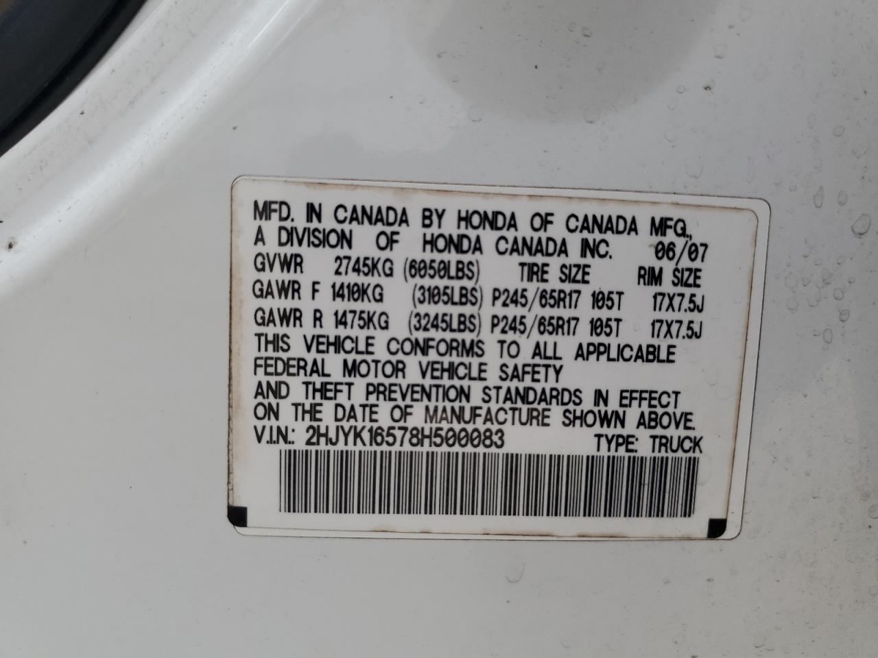 VIN: 2HJYK16578H500083