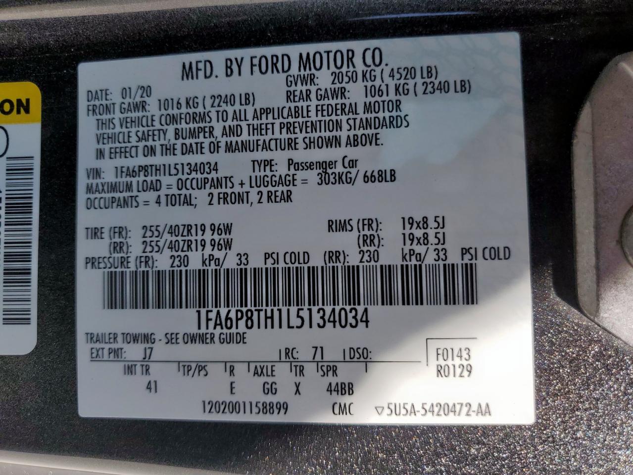 VIN: 1FA6P8TH1L5134034