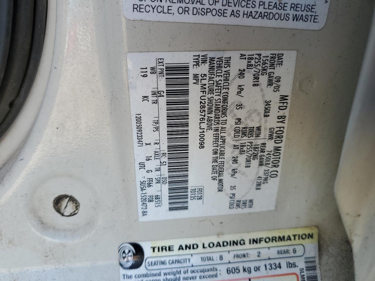 VIN: 5LMFU28576LJ10098