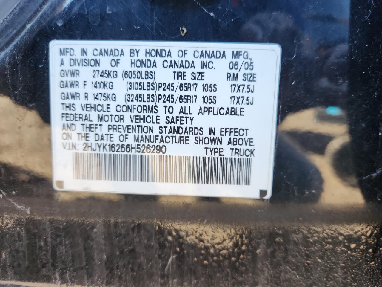 VIN: 2HJYK16266H526290