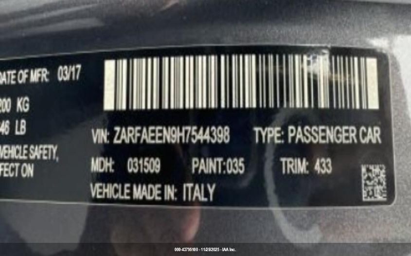 2017 ALFA ROMEO GIULIA TI AWD