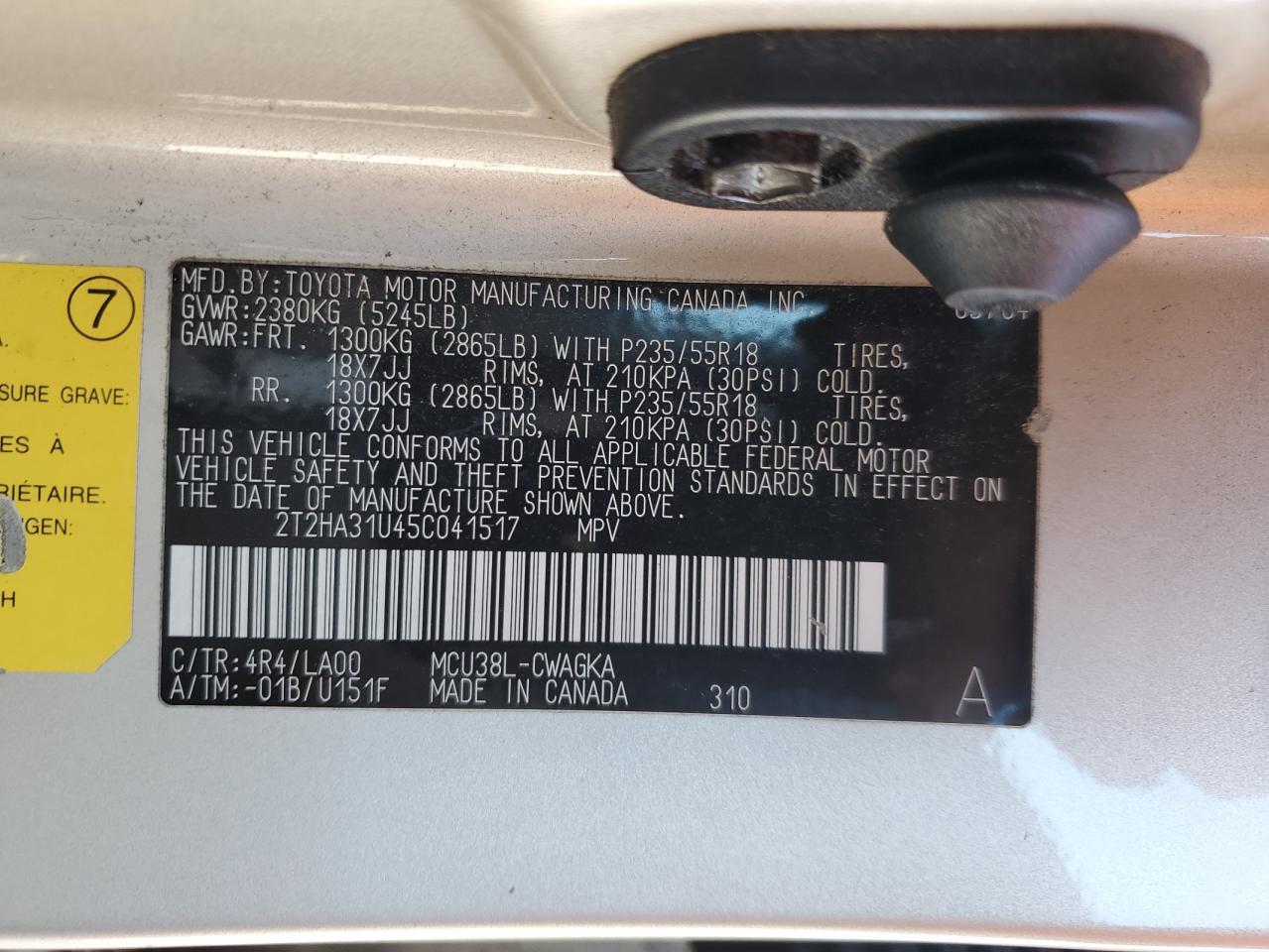 VIN: 2T2HA31U45C041517