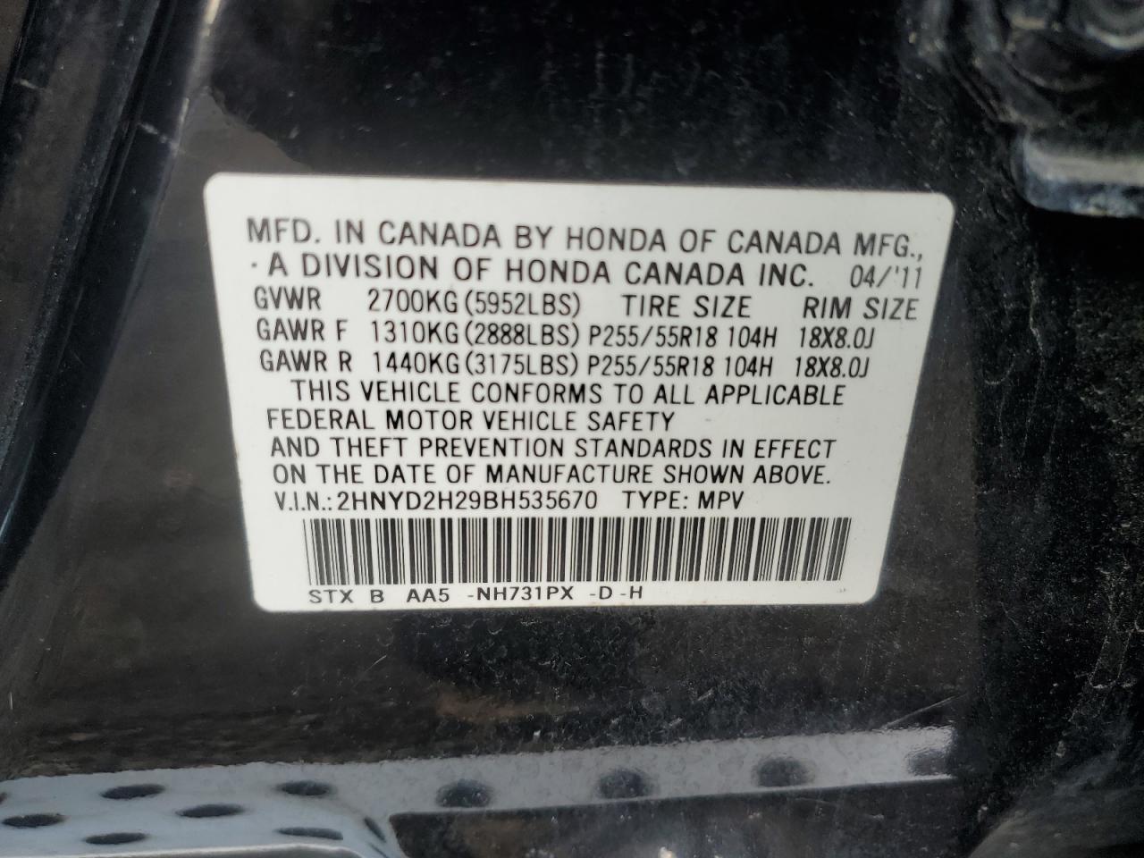VIN: 2HNYD2H29BH535670