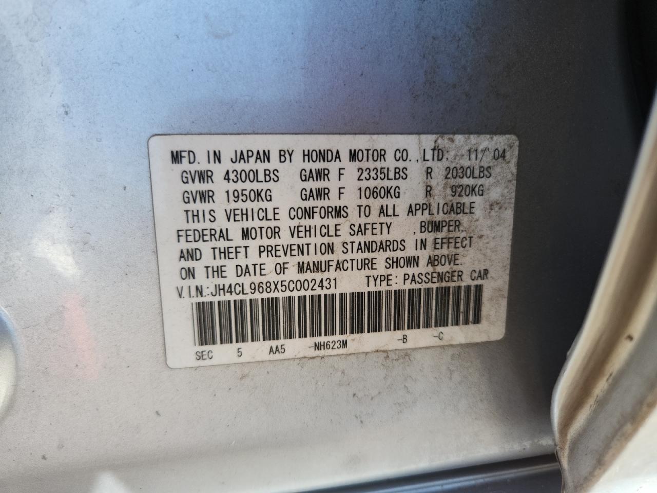 VIN: JH4CL968X5C002431