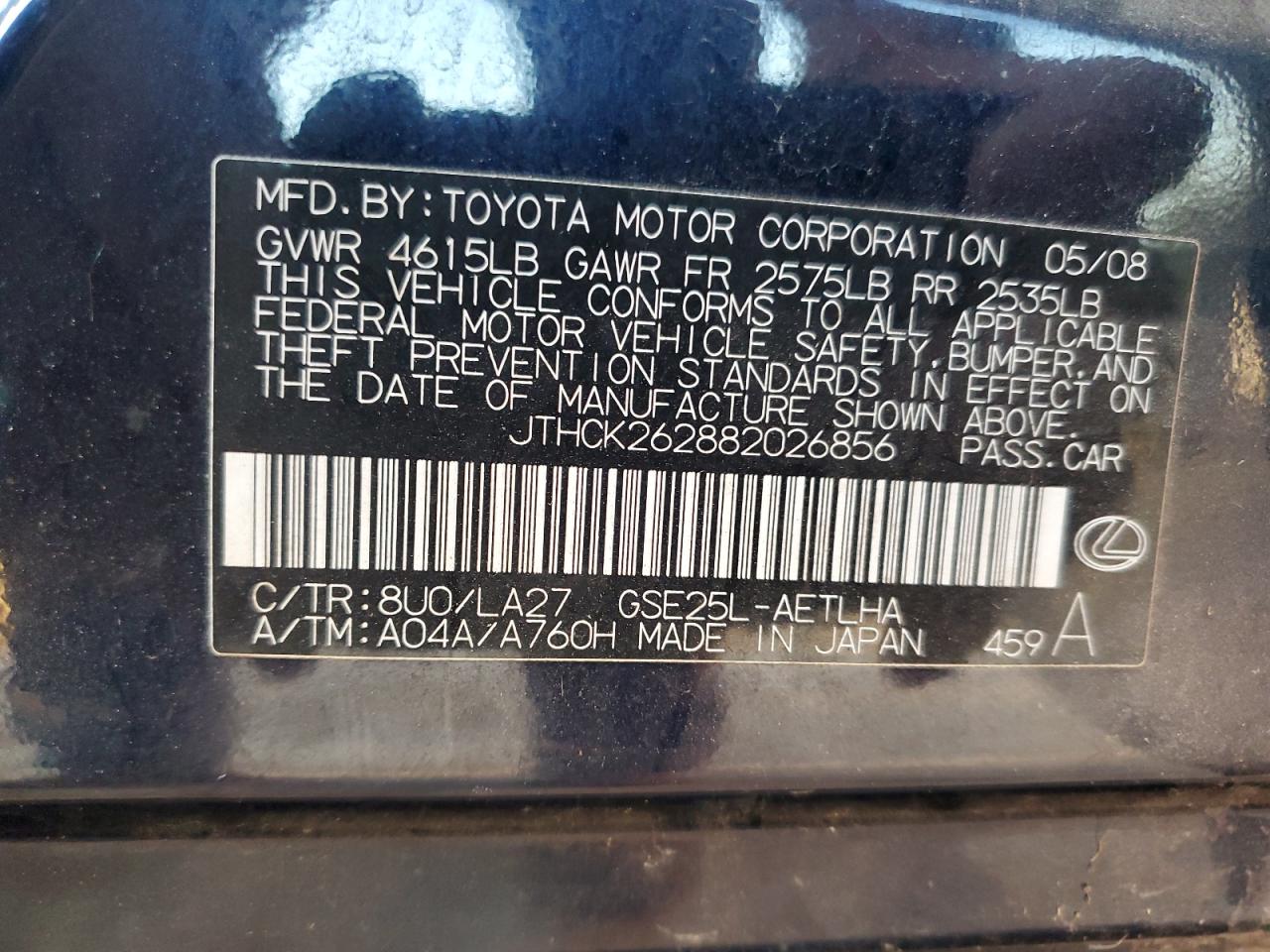 VIN: JTHCK262882026856