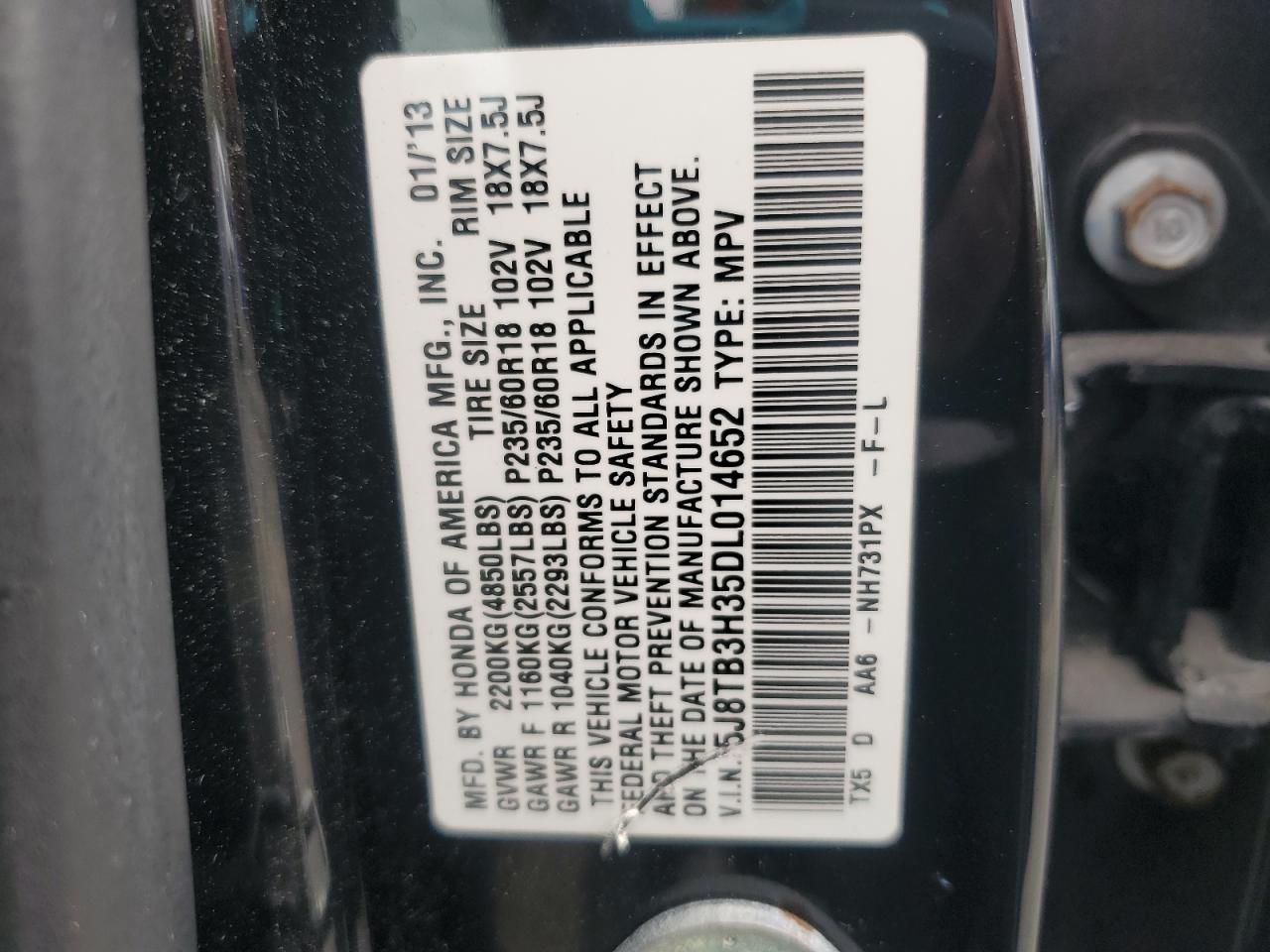 VIN: 5J8TB3H35DL014652