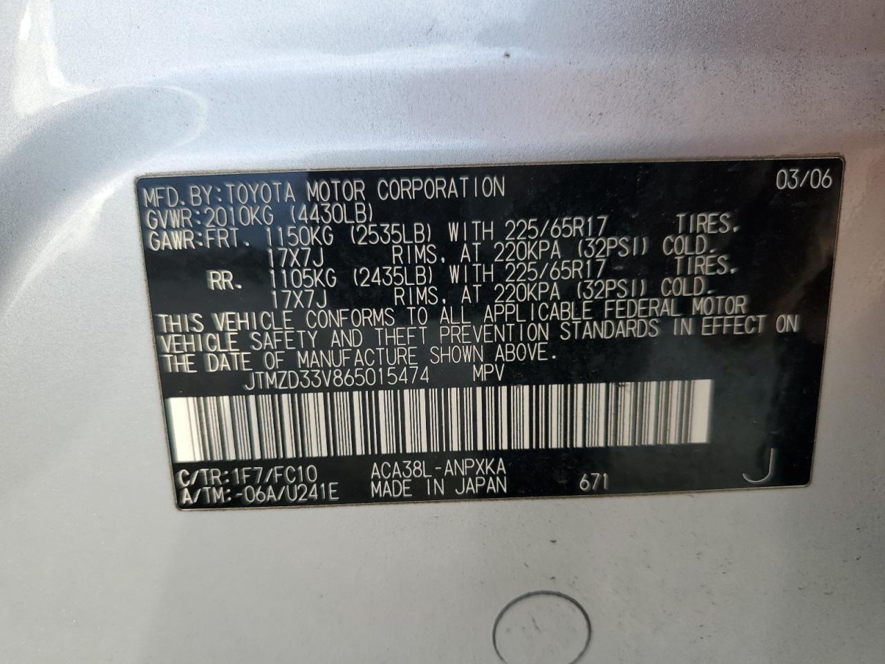 VIN: JTMZD33V865015474