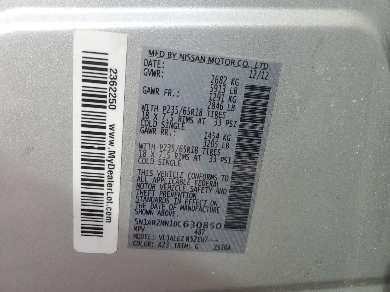VIN: 5N1AR2MN1DC630850