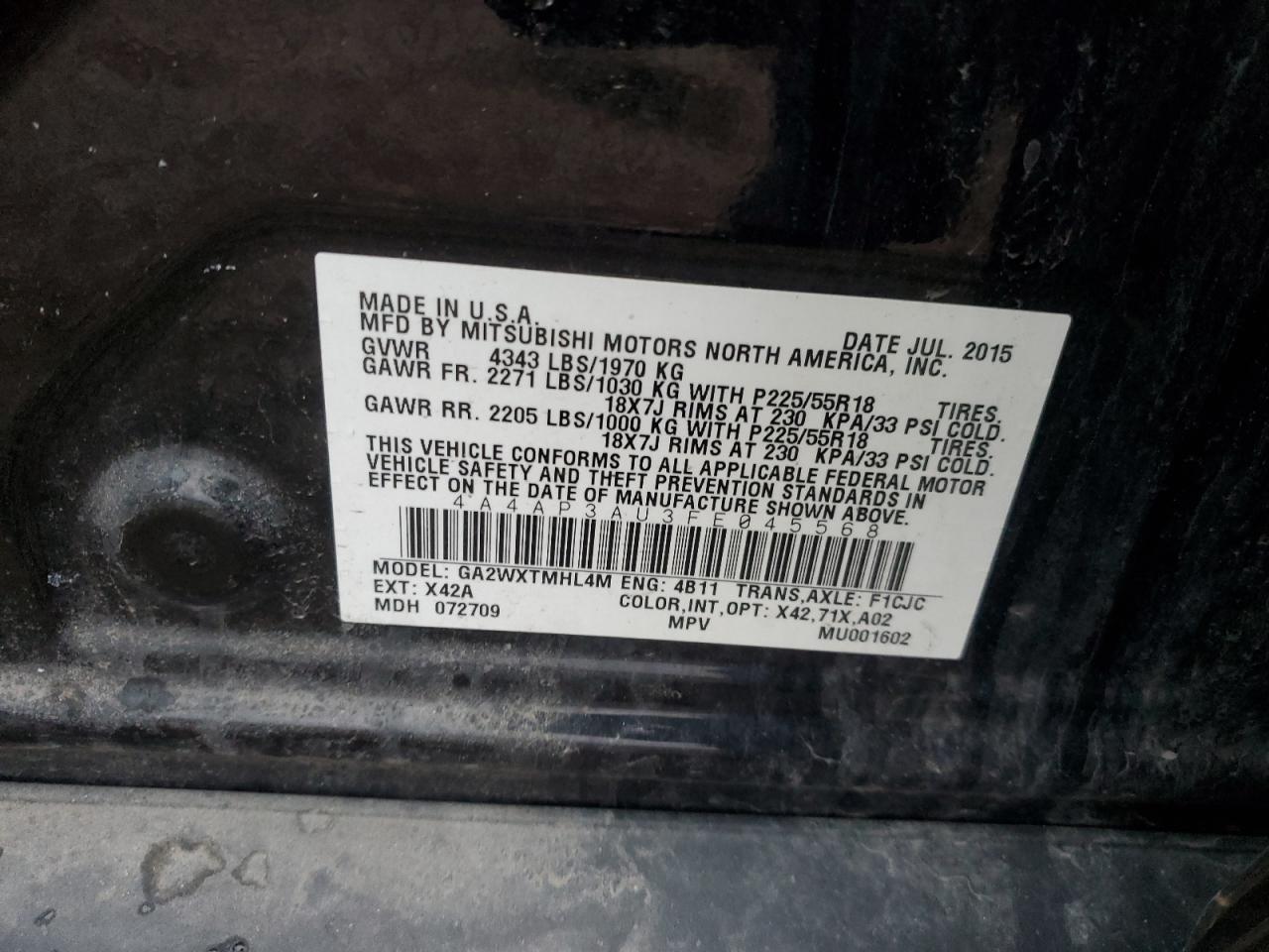2015 MITSUBISHI OUTLANDER SPORT ES